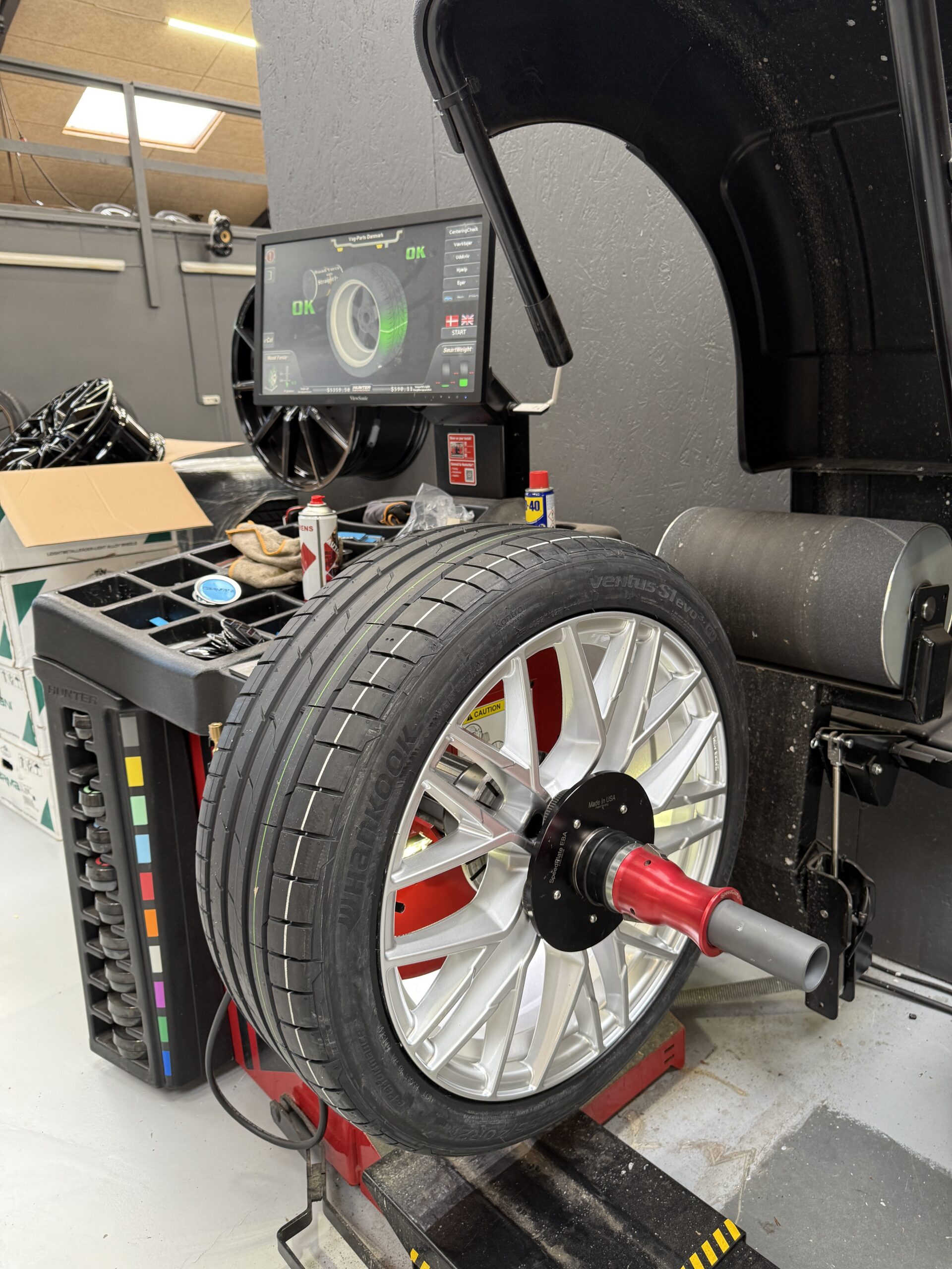Alle vores fælge og dæk sæt bliver samlet på det mest moderne udstyr, der findes i dag! – Dækkene bliver monteret på fælgene med centeropspænding samt faste arme, der sikrer, at det er umuligt at ridse fælgene. Til sidst bliver de kørt igennem vores nyeste HUNTER Roadforce afbalanceringsmaskine med vejtryk samt straight track og optimering.