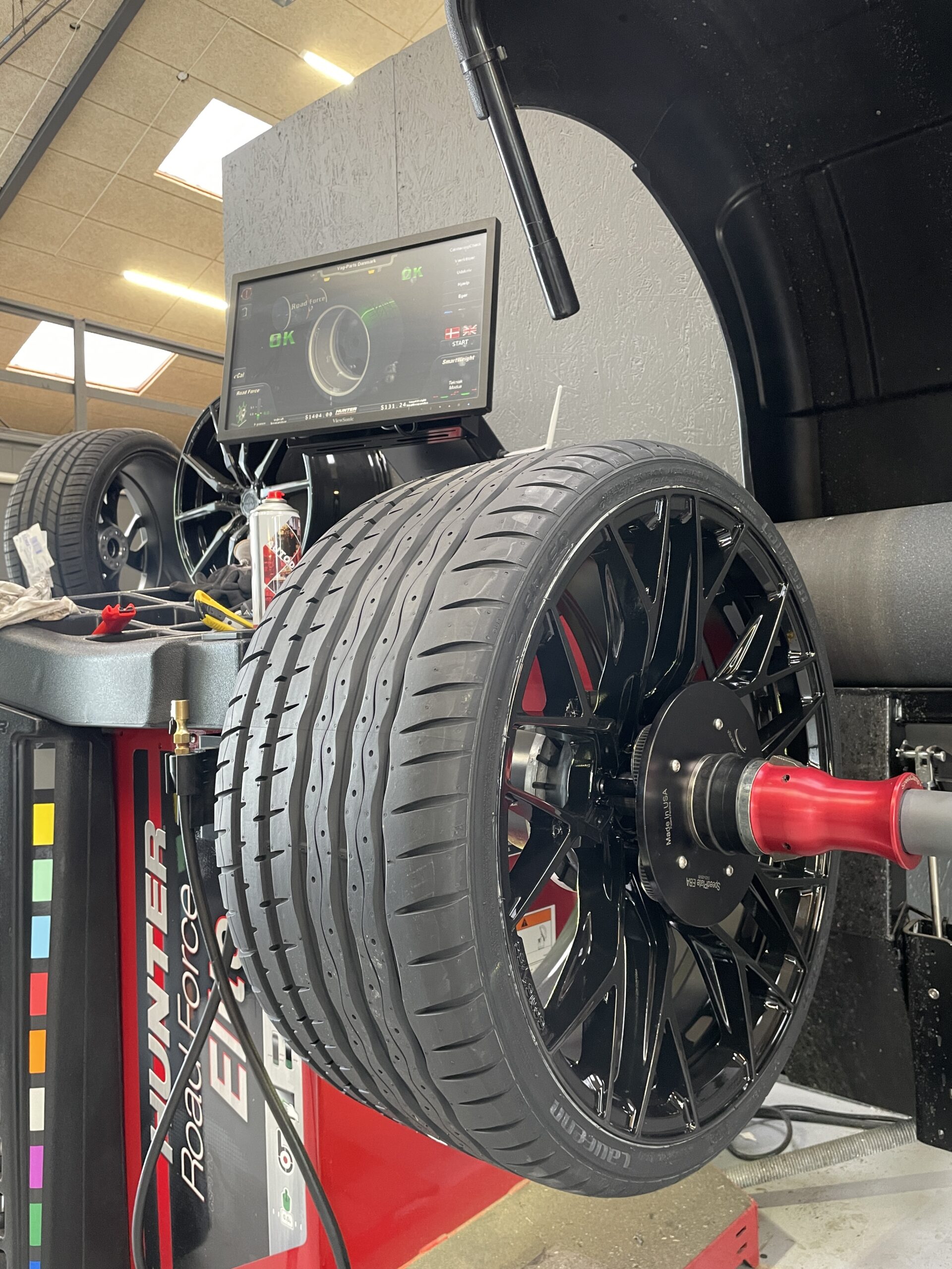 Alle vores fælge og dæk sæt bliver samlet på det mest moderne udstyr, der findes i dag! – Dækkene bliver monteret på fælgene med centeropspænding samt faste arme, der sikrer, at det er umuligt at ridse fælgene. Til sidst bliver de kørt igennem vores nyeste HUNTER Roadforce afbalanceringsmaskine med vejtryk samt straight track og optimering.