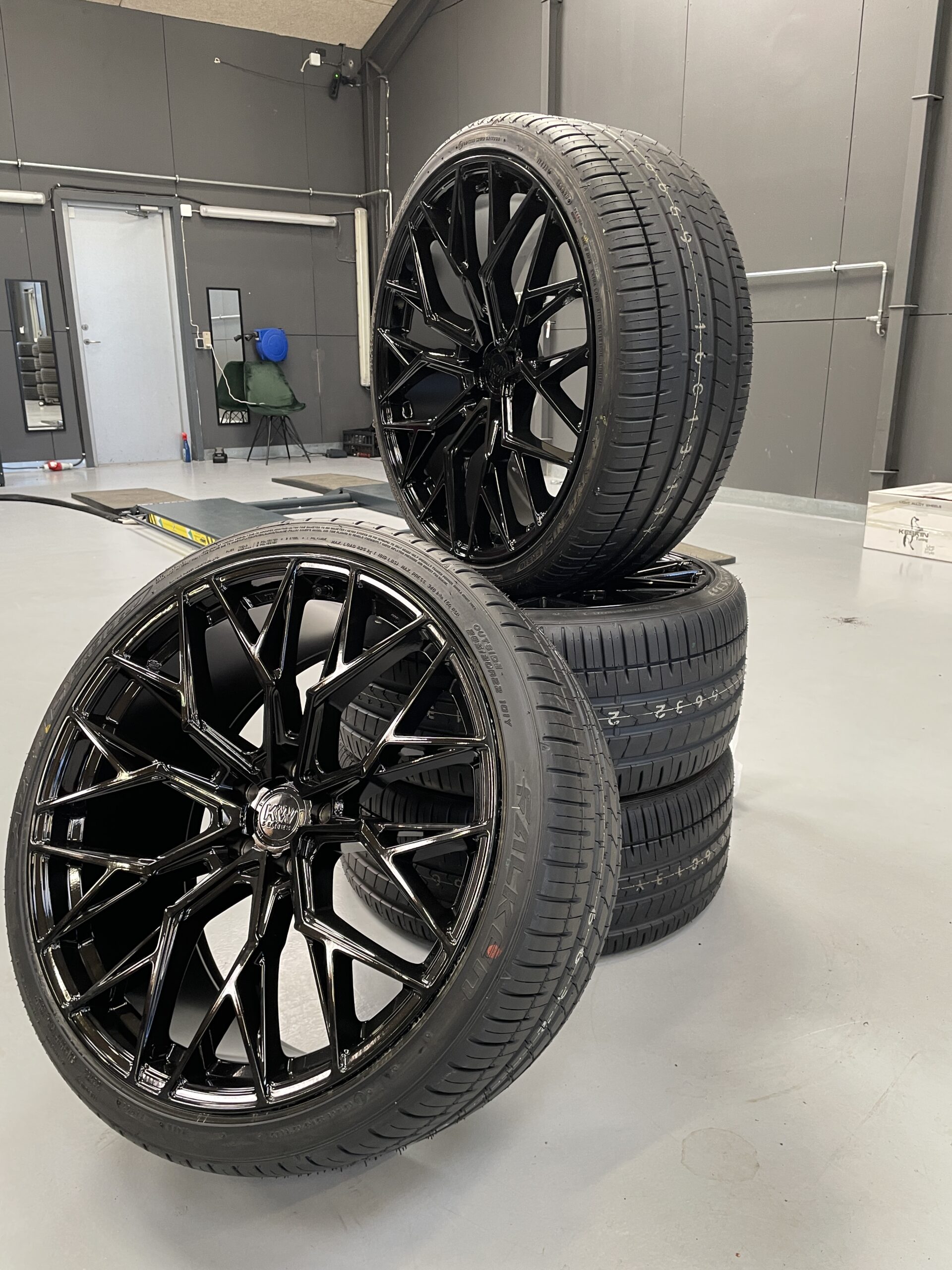 Alle vores fælge og dæk sæt bliver samlet på det mest moderne udstyr, der findes i dag! – Dækkene bliver monteret på fælgene med centeropspænding samt faste arme, der sikrer, at det er umuligt at ridse fælgene. Til sidst bliver de kørt igennem vores nyeste HUNTER Roadforce afbalanceringsmaskine med vejtryk samt straight track og optimering.